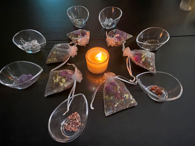 魔女会では、役割を終えた出来事や物、思考などを手放し、希望に意識を向け、愛と調和の祈りの言葉をみんなで唱える場面もありました。
